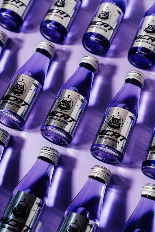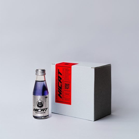 HICATは、2023年5月16日に販売を開始した、マタタビ配合のエナジードリンクです。(プレ販売は2022年12月より)瓶のボトルに紫色のドリンク、銀のラベルが特徴で、メタバース空間やデジタル感を意識した個性的なデザインになっています。フルーティーで飲みやすい微炭酸フレーバーで、カフェインを配合していないため、夜でも飲むことができます。蓋を開けた瞬間にひろがるハーブの香りにもこだわりました。