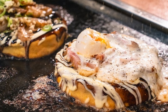 一般的なお好み焼きと比べると少し小ぶりではありますが、その分厚さが2倍以上もあるため丁度良いサイズ感となっております。