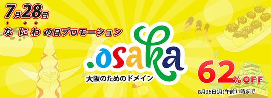 「なにわの日」とは、大阪市浪速区が「未来わがまちビジョン」に基づき、浪速区がもつ多彩な魅力の再発見とその認知度を高めることを目的として、2007年に制定。大阪コミュニティに属する個人、組織、企業、政府機関をつなぐプラットフォームとして活用頂けるドメイン「.osaka」は、「なにわの日」を記念してプロモーションを実施します。この機会に、大阪ブランドのアピールに最適な「.osaka」を是非ご検討ください。