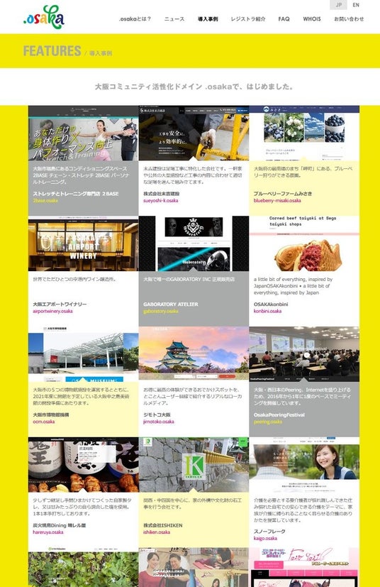 「.osaka」を活用中のサイトをランダムにご紹介しています。
