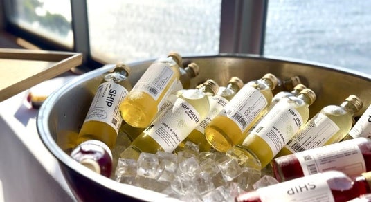 当日は上映会のあとに、海士町の食材をメインにした軽食とドリンクをお楽しみいただける立食パーティーが開催されました。軽食とともに提供された「_SHIP KOMBUCHA」は、ナチュラルな原材料と日本国内で唯一の非加熱製法にこだわり、ブルワーの経験と感性、そして人と環境への想いを込めて作った、とっておきのドリンク。大泉工場のスタッフが個々に大事にしているスローフードのあり方や食との向き合い方、世の中を素敵な笑顔で満たしたいというメッセージに共感いただき、この度、特別な一杯として選んでいただきました。