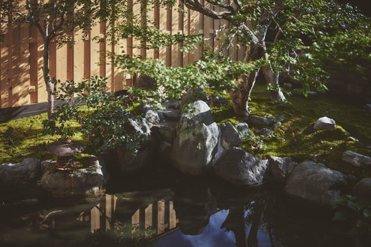池のあるお庭をのんびりと眺めることができる、広々としたお部屋です。自然の息吹に包まれながら、ヨガや瞑想をするのもおすすめです。大きなガラス窓を開け放てば、やわらかな風に包まれます。