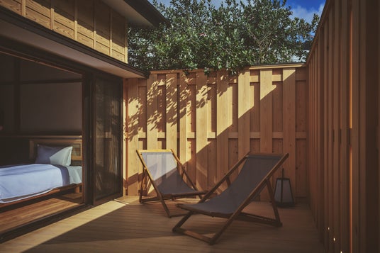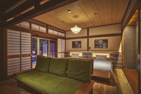 かつては、日本橋から20番目の宿場町・丸子にて、安らぎを提供してきた民宿若松をリノベーションし、静岡のものつくりの息吹を宿しました。どのお部屋も澄んだ山里の空気の中、寛いでいただけるようにウッドデッキが併設されています。