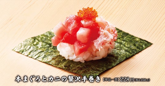 本まぐろとカニの組み合わせを堪能できる豪華な手巻きです
