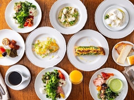 朝食には、モッツァレラやストラッチャテッラ等のつくりたてチーズと、季節の食材をふんだんに使用したデリカテッセンに、選べるメインプレートがセットになった個性豊かなビュッフェを提供。ランチ、ディナーは自家製のフレッシュパスタを中心につくりたてチーズのほか、チーズの個性を活かした季節の前菜、メインの肉や魚介、デザートまで、ライブ感のある厨房から提供いたします。