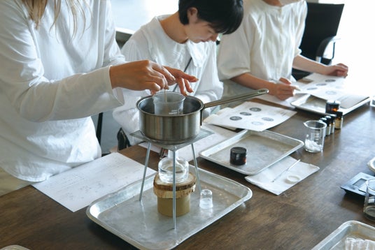 アロマワークショップの様子。雨や曇りの日は、サロンで開催されるワークショップに参加したり、読書をしながら室内でのんびり過ごすのもおすすめ。