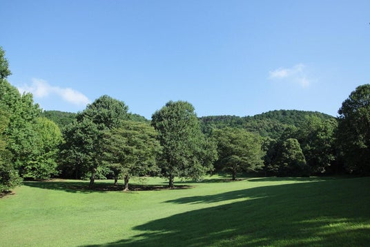 コテージ前には巨大な芝生広場が広がります