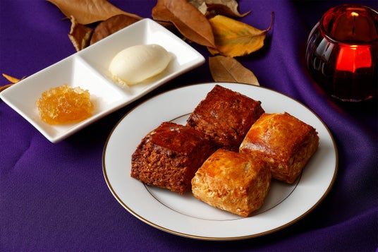 アフタヌーンティーで提供をしているホテルメイドのスコーンを、ご自宅でもお楽しみいただけるよう販売をしております。スコーンは4個入り、季節によって限定フレーバーとプレーンの2種類入りでご用意します。香ばしいサクサク感と中のしっとりとした食感を、ご朝食やティータイムにぜひお楽しみください。