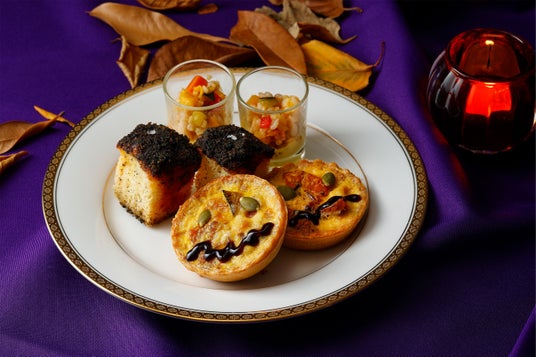 ハロウィンの夜に魔女がおばけたちを招き収穫の秋を楽しむパーティーをイメージしたアフタヌーンティーです。旬の食材である葡萄やかぼちゃ、紫芋などを使用し、遊び心あふれるワクワクするようなハロウィンの魅力を味わっていただけます。スイーツには、ハロウィンのイメージにぴったりの「魔女のおもてなし 葡萄のミニパフェ」や「ミイラのラムボール」、「紫芋の三日月パイ」など、セイボリーには、子どもたちがハロウィンに集める色とりどりのお菓子を表現した「麦のサラダとデビルエッグソース」や、ジャック・オー・ランタンのデザインをした「おばけカボチャのキッシュ」などご用意、見た目にもこだわったティーフーズがスタンドを彩ります。ハロウィンを満喫するフォトジェニックなアフタヌーンティーを、美味しい紅茶とともにどうぞごゆっくりとご堪能ください。