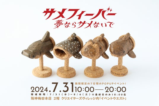 SNSの総フォロワー数1,000万人で300名が所属するクリエイターコミュニティ「クリエイターズラッシュ!!」レトロな文字をテーマにしたポップアップ『レトロ文字部』や猫好きによる猫グッズのポップアップ『てんにゃんかい』など人気コンテンツをプロデュースを行うクリエイターズラッシュ!!(所在地:兵庫県西宮市、代表:ワビスケ)は、「サメ」をテーマにしたサメグッズのポップアップ『サメフィーバー ~夢ならサメないで~』がさらなるパワーアップをしこの夏に帰ってきます!