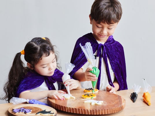 タオタオモナからもらったクッキーは、その場でシュガーデコレーションをすることができます。オレンジや紫色などハロウィンカラーのアイシングを使ってクッキーにハロウィンにちなんだ絵柄を描いたり、キラキラ光るシュガースパークルを使ってデコレーションをして、オリジナルのクッキーを作ることができます。