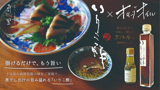 小豆島で創業20年以上を迎え、様々なメディアでも紹介される高級旅館の真里(有限会社真里|香川県小豆島|代表:眞渡康之)は、真里の料理の真髄である「和食×オリーブ」をご家庭でもお楽しみ頂ける、特別な「いりこ酢とオリーブオイル」のセットの先行予約販売をクラウドファンディングサイトMakuakeにて、7月23日より開始します。