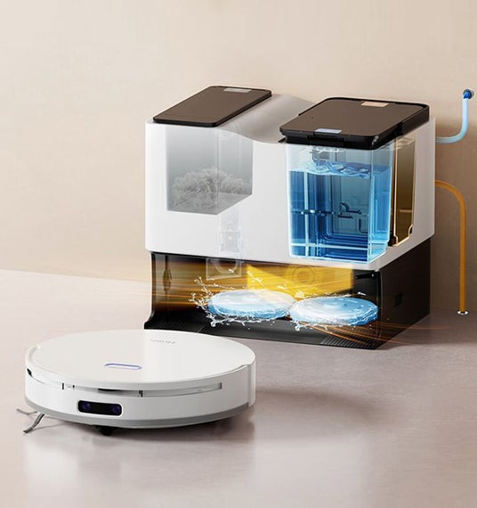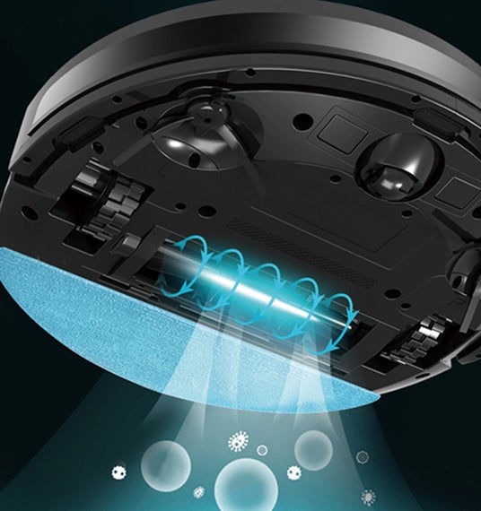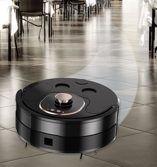 当製品は、幅33cm高さ8.6cmと家庭用サイズながら、吸引・水拭きに対応した業界でも珍しい小型ロボットです。食べかすも逃さない吸引力に加え、拭き取り力の強いモップで、床のしみやベタつきを擦り取ります。