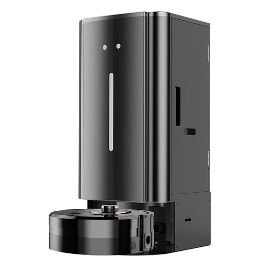 当製品は、横幅32cm、高さ10 cmとシリーズ最小の吸引特化型ロボットです。通常は吸引できない2cm程度の大きな食べかすや、カーペットの奥に絡みついたゴミまで吸引します。