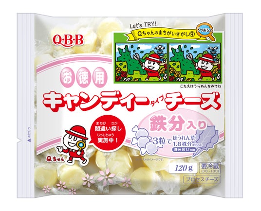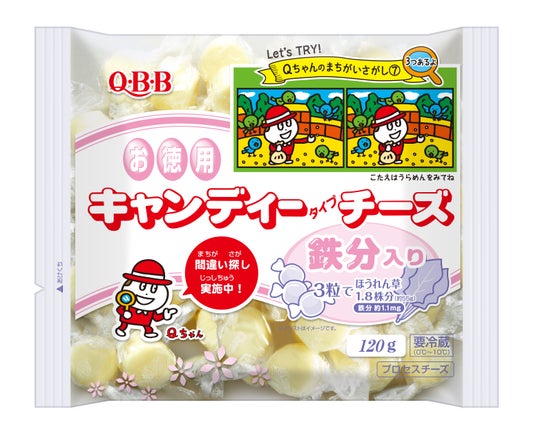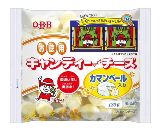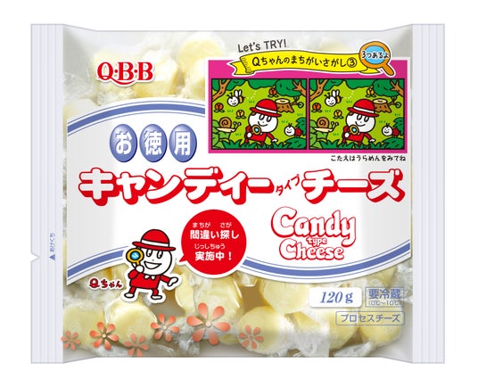 1979年の発売から45年を迎えるキャンディチーズは、ひと口サイズで個包装という食べやすさ、お子様でも開けやすいひねり包装、お料理にも使いやすいなどのご意見から長年愛されてきました。今回、Qちゃんの間違い探しパッケージを展開することで、お子様のおやつタイムにより楽しくキャンディチーズを食べていただけるようにと願い企画しました。