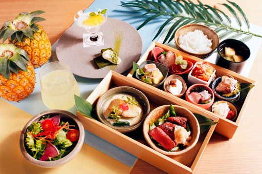 『日本の食を応援する』をコンセプトに、日本各地の作り手と繋がり、産地の美食を発信している食の複合施設「農絆卓恵」。その2Fにあるレストラン「地産美食の小皿料理」にて、『旅するおべんとう箱』シリーズの第2弾沖縄編がスタートします。第1弾“新緑の京丹後”では、「生産者さんのこだわりを知り、より一層美味しく感じた」、「まだ見ぬ食材に出逢うことができてよかった」など、嬉しいお言葉を多数いただきました。第2弾となる今回は、太陽が輝く夏の沖縄へとご案内します。トリップアドバイザーが発表した「2024年夏の人気観光地」のTOP5に沖縄の観光地が3つ選ばれるなど、夏旅行の代名詞ともいえる沖縄。今回はそんな南国の楽園で、循環型農業に取り組んでいる石垣島の「やえやまファーム」をはじめ、島で生産・加工まで行っている生産者さんのこだわり食材を、農絆卓恵ならではのアレンジで2段のおべんとう箱に詰め込みます。