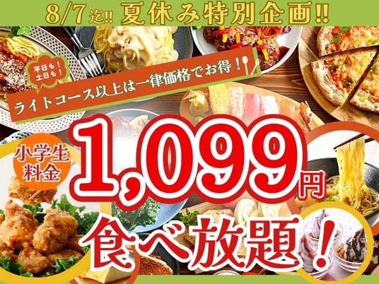 ぜひ今年の夏休みは、ご家族でリーズナブルに!お得に食べ放題をお楽しみください。