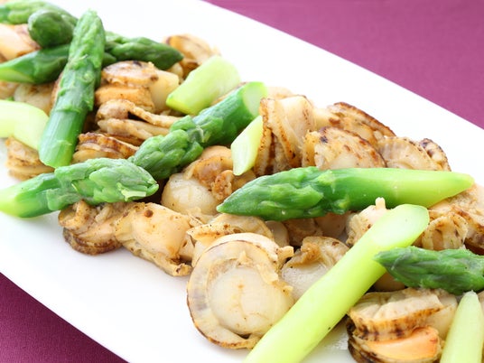 北海道産帆立貝とアスパラガスのバター醤油ソテー