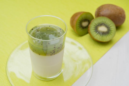 上層はフレッシュなキウイを贅沢に使用したキウイピューレです。なめらかな口当たりの杏仁もちりと甘酸っぱいキウイの相性は抜群です。