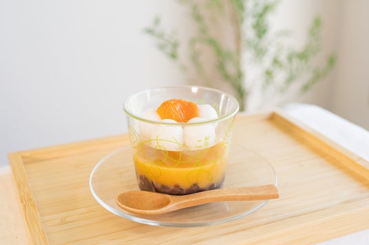 船橋屋のあんこ職人が丁寧に手づくりしている特製小豆に、杏と白餡を合わせた杏餡。酸味と甘みがマッチした船橋屋オリジナルの冷たいおしるこです。あんこと杏は相性抜群で、優しい味わいがクセになります。