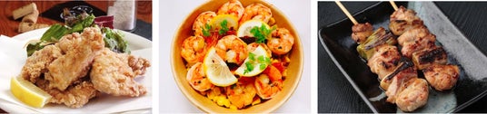 兵庫県但馬産の鶏肉に淡路島の藻塩を使った「TORIKARA STAND」の唐揚げや、「Mr.Shrimp」の香ばしいガーリックシュリンプ、「炭火やきとり鳥匠」の本格的な焼き鳥など、お酒がグビッっとすすむおつまみをお楽しみいただけます。