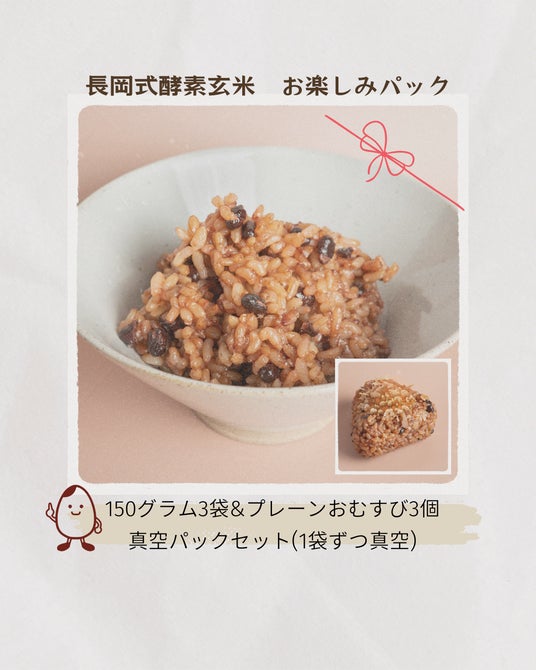 ・長岡式酵素玄米お楽しみパック(150g3袋、プレーンおむすび3個)