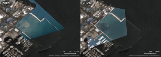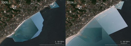 例えば、三浦海岸では、2005年に群生していたアマモ(赤色箇所)が、2024年には少なくとも画像からは見つけられないほどに消滅していたことがわかります。