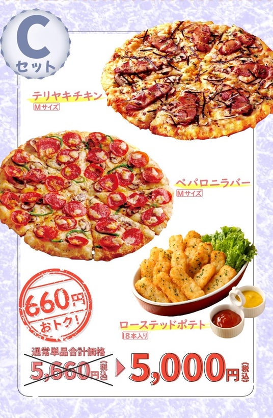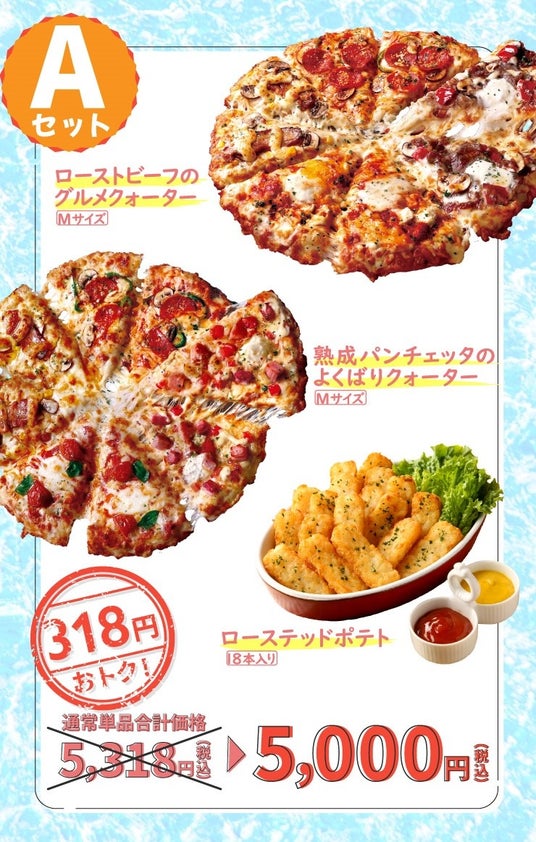 7月25日(木)からは、人気のMサイズピザ2枚とローステッドポテト18本入りがセットで5,000円のお得なセット『選べる夏フェスセット』を販売いたします。