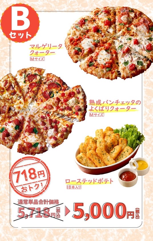 718円おトク!Bセット マルゲリータクォーター・熟成パンチェッタのよくばりクォーター・ローステッドポテト(18本入り)