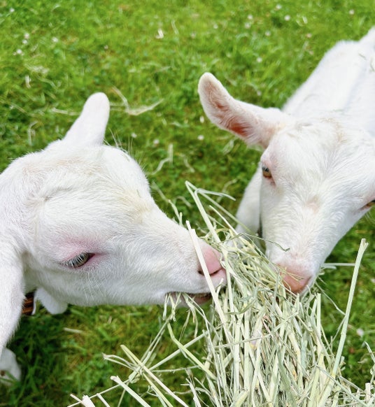 お客様にはゆったりとした時間を過ごしていただきながら、2頭の子ヤギの、のんびりとした愛らしい姿を眺めたり、エサをあげて触れ合ったり、癒しの場としてお楽しみいただければ幸いです。