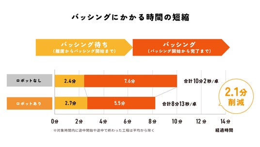 また、1テーブルあたりのバッシングにかかる時間は、ロボットありの場合は約2分削減されました。