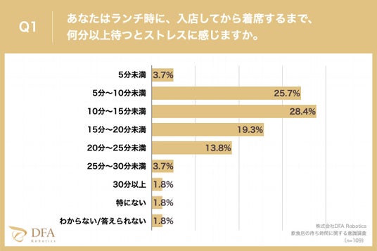 飲食店DXを推進するロボティクスソリューションカンパニーである株式会社DFA Robotics(本社:東京都渋谷区恵比寿、代表取締役社長:松林 大悟)は、週に3回以上外食する20代~50代の男女109名を対象にアンケート調査を実施しました。