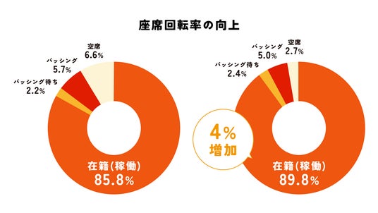 DFA Roboticsが実際に飲食店にてロボットあり/なしで比較したところ、空席が6.6%から2.7%へと変化、稼働率は4%アップしたケースもあります。