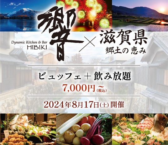 株式会社ダイナック(本社:東京都港区、代表取締役社長:綾野喜之)が運営する『Dynamic Kitchen & Bar 響』が開催する人気のフェア「響の地方応援プロジェクト」。第6弾は、前回好評の滋賀県と再びコラボレーション。滋賀の名産品を使った料理を8月1日(木)より期間限定で販売いたします。さらに、品川店限定で8月17日(土)に滋賀県の食材を使用したビュッフェ料理を提供するイベントを開催します。