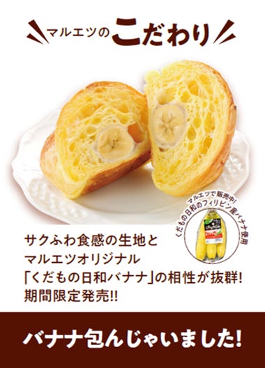 マルエツオリジナルブランド「くだもの日和バナナ」を包み、焼きあげました。