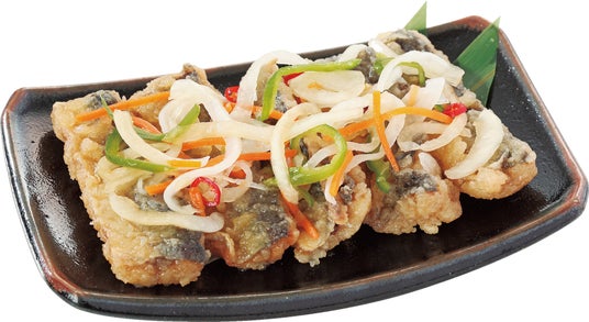 秋の味覚、秋刀魚(さんま)をふっくら竜田揚げに仕上げました。