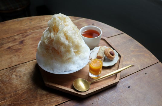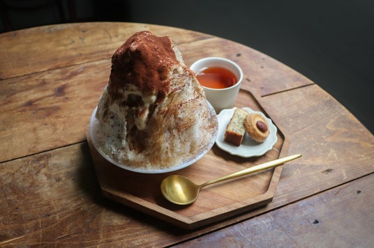 「べにふうき」で作ったシロップのシンプルな美味しさと優しく華やかな香りをお楽しみください。食べ進めるにつれて爽やかなマンゴーのソースや果肉・ティーゼリーが合わさり、フルーツティーのような味わいの変化をお楽しみいただけます。お好みで追いマンゴーソースをかけてお召し上がりください。