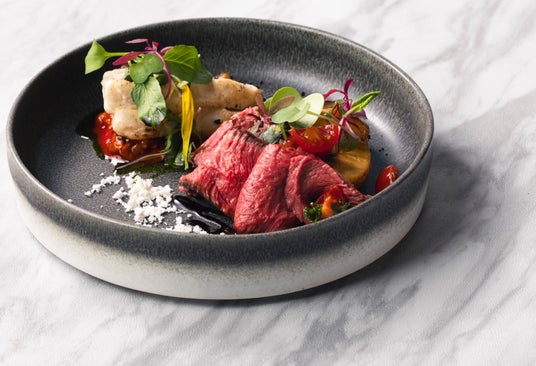 国産牛のステーキ~淡路産玉ねぎのシャリアピンソース~&真鯛のポアレ ラタトゥイユと共に