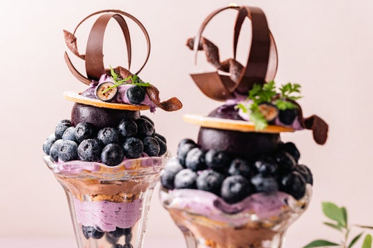 優しい味わいでどんなフルーツやスイーツとも相性が良いからこそ、メインになりにくいブルーベリーにスポットライトを当てた本パフェ。トップにはブルーベリーソルベやクッキー、チョコで飾り付け、まるでプリンセスのティアラのように華やかなで可愛らしいデザインにこだわりました。