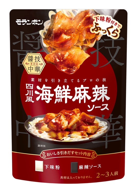 仕上げの技として、麻辣ソースにごま油を加え加熱し、魚介に上がけして完成する調理方法を取り入れた「四川風海鮮麻辣ソース」が新たなラインアップとして加わります。