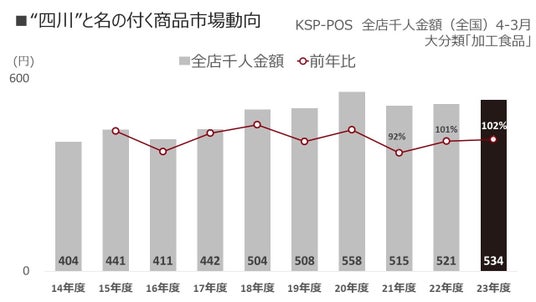 さらに2023年度の“四川”と名の付く商品市場は、前年比102%と伸長しており、中華料理のジャンル・テイストの一つとして確立しています(KSP-POS 全店千人金額(全国)9-2月)。中でも、魚介を美味しく食べられる“花椒”を使用した「麻辣」テイストに着目しました。