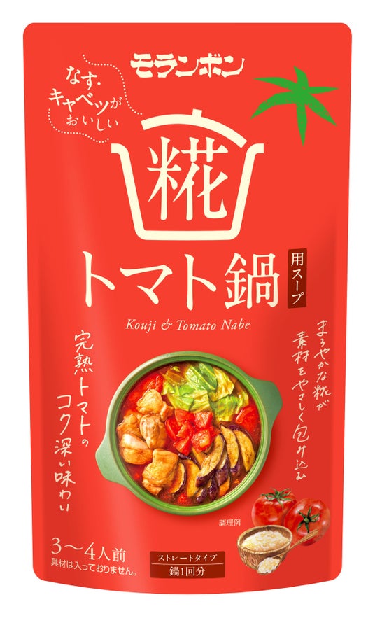 糀トマト鍋用スープは糀を含んだ旨みたっぷりのスープで野菜をおいしく食べられる鍋です。冬の季節に鍋の頻度が高くなり、食事にマンネリを感じることがあればぜひ、なすやキャベツといった普段とは違う具材を使った鍋でワクワクしていただきたいと思います。