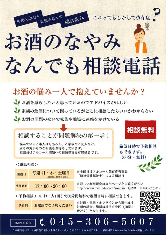 一般社団法人 Recovering Minds(リカバリング マインズ)はアルコール問題などさまざまな依存症からの回復や、心の健康維持と回復を応援する事業を、セミナー・カウンセリング・電話相談等を通して行っております。