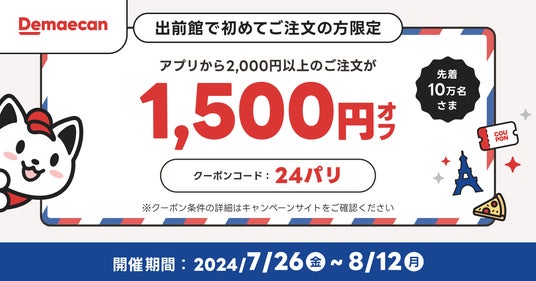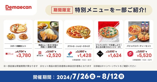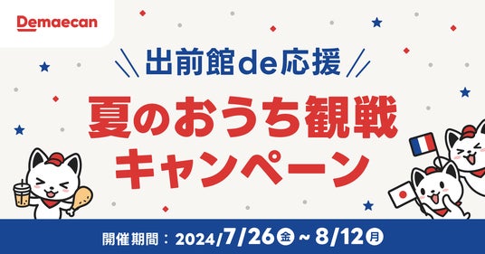 株式会社出前館は、運営する日本最大級のデリバリーサービス『出前館』において、おうちでのスポーツ観戦が盛り上がる2024年7月26日(金)~2024年8月12日(月)の期間で「出前館de応援!夏のおうち観戦キャンペーン」を実施いたします。