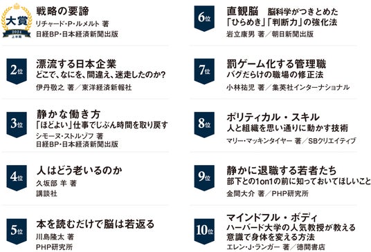 第2位は、一橋大学名誉教授の伊丹敬之氏が、低迷が続く日本企業が犯した誤りを明らかにした『漂流する日本企業 どこで、なにを、間違え、迷走したのか?』(東洋経済新報社)です。伊丹氏によれば、「失われた30年」の間、日本企業が伸び悩んでいる原因は、戦後の成長を支えた“経営の原理”を忘れたことにあるといいます。本書では、株主偏重の今の経営に警鐘を鳴らしつつ、積極的な設備投資や人材投資で企業を成長させ、結果的に株主にも報いる、という「従業員主権経営」の復権を説いています。
