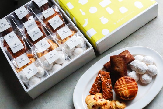 実はカヌレ以外にも人気の焼き菓子がたくさん。galbeのクッキー缶や詰め合わせは、デザインも可愛らしく、帰省シーズンのプレゼントに大変喜ばれます。