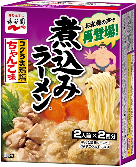 株式会社 永谷園(社長:成田 健一、東京都港区、https://www.nagatanien.co.jp/)は、鍋やフライパンで野菜や肉と一緒に煮込んで作るラーメン「煮込みラーメン しょうゆ味」、「同 みそ味」、「同 とんこつしょうゆ味」に加え、復活メニュー「煮込みラーメン(R)コクうま鶏塩ちゃんこ味」(希望小売価格:430円(税抜))を、2024年8月5日(月)より発売いたします。