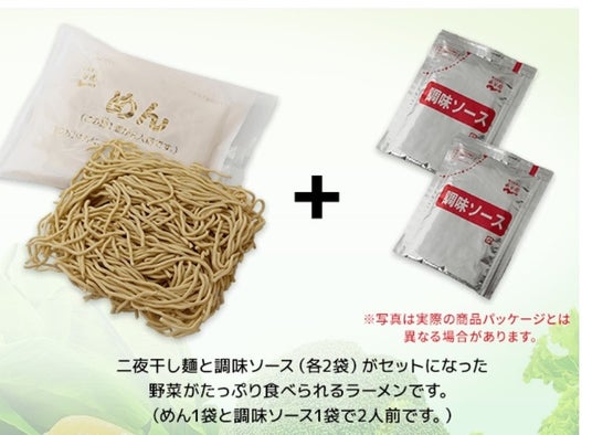 1. 生麺を約2日間かけてじっくり乾燥させて作った“煮込んでも伸びにくい麺”を使った、調味ソース(スープ)付きのラーメンです。(2人前×2回分)