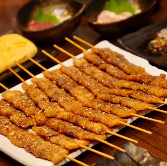 『とんぺら屋』にご来店頂いた方が必ずといっていいほど、ご注文頂くのが『とんぺら焼き』です。とんぺら焼きは、1本90円の豚ばら串です。一度食べると、やみつき。思わず何本も食べたくなり、注文率は100%超え!名物商品です。