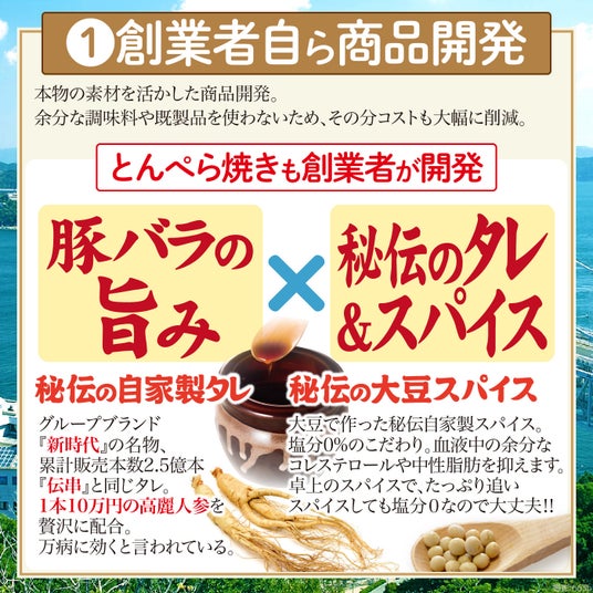 1)累計販売本数2億本超え『伝串』と同じ味付けの『とんぺら屋』名物の『とんぺら焼き』